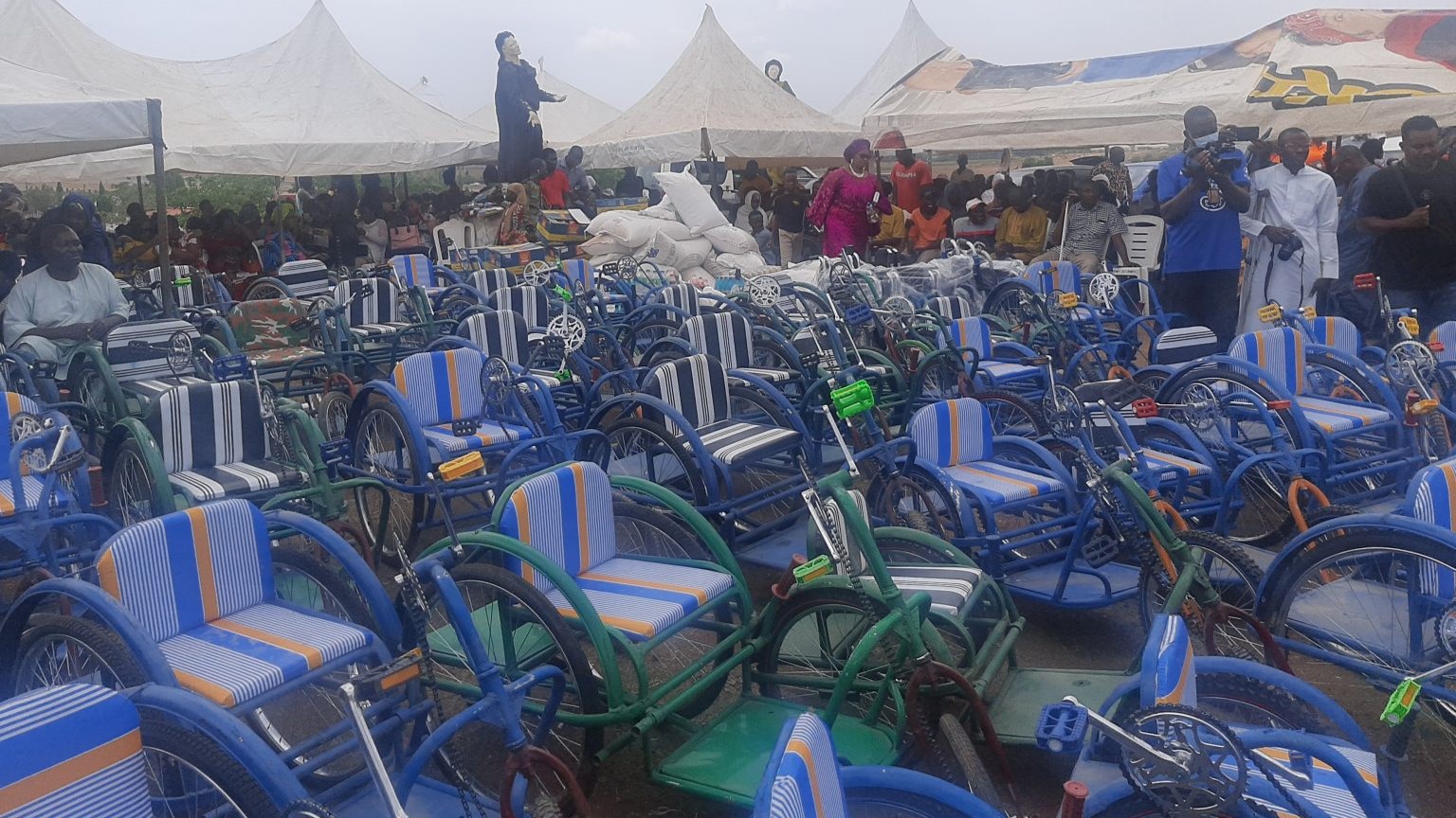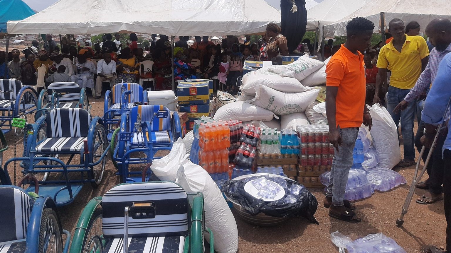 His Eminence, John Cardinal Onaiyekan blessing the wheelchairs and materials to be distributed to the PWDs
